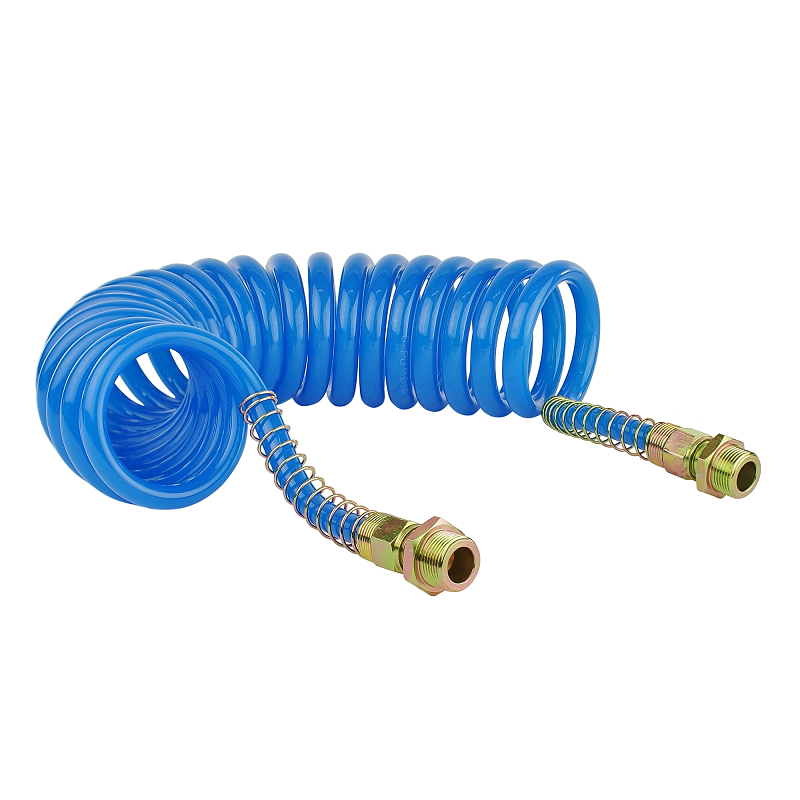 Uniwersalny, niebieski wąż spiralny pneumatyczny (powietrzny), wykonany ze bardzo elastycznego poliuretanu,