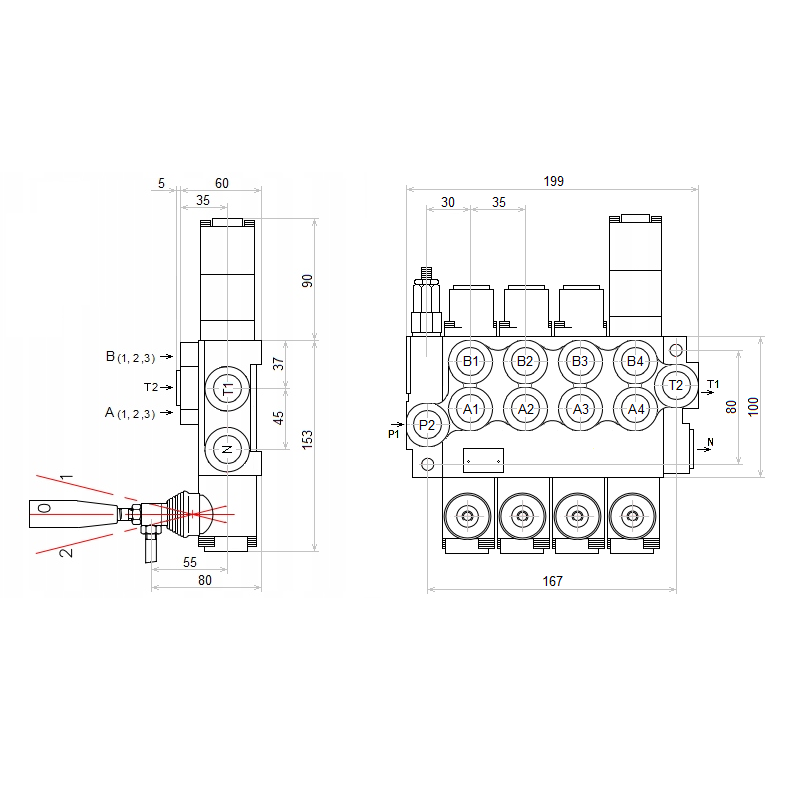 ROZDZIELACZ HYDRAULICZNY 4 SEKCYJNY