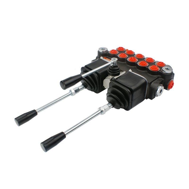 Rozdzielacz hydrauliczny 5 sekcyjny 40L/min sterowany dwoma joystickami i dźwignią