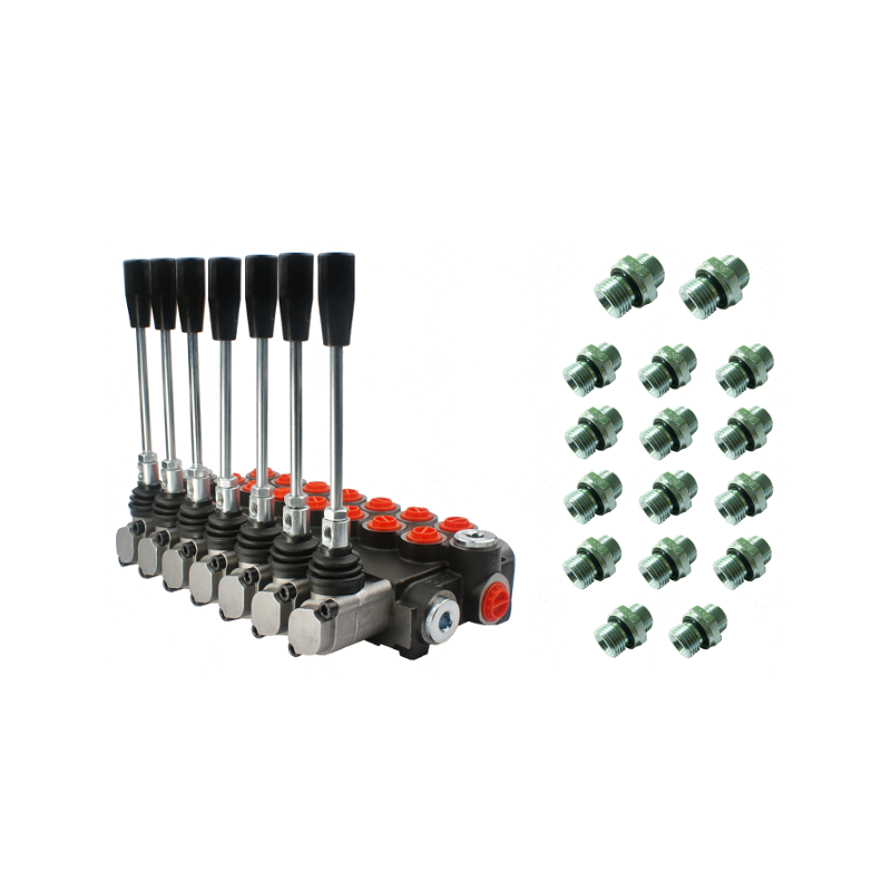 Rozdzielacz hydrauliczny 7 sekcyjny 40L/min w zestawie z przyłączami