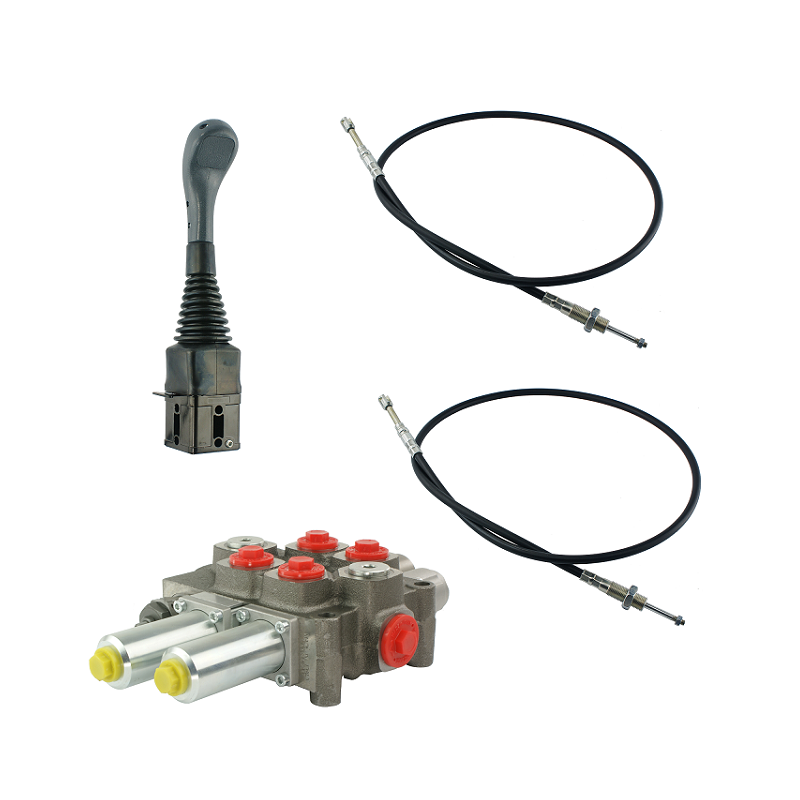 Zestaw hydrauliczny 2 sekcyjny: rozdzielacz 120L z sekcją pływającą + joystick bez przycisków + dwie linki 3m