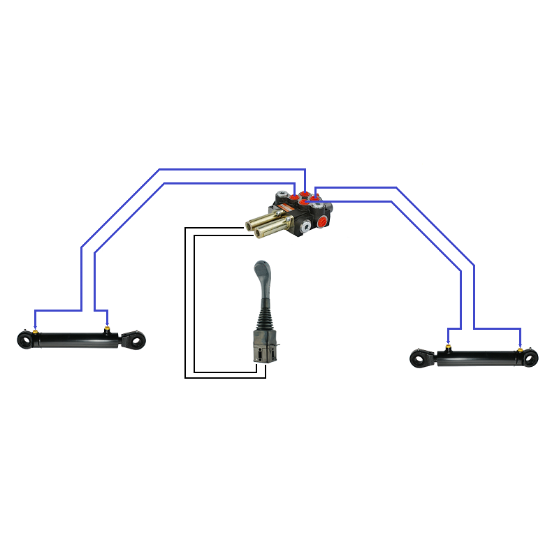 Zestaw hydrauliczny 2 sekcyjny: rozdzielacz 40L + joystick bez przycisków + dwie linki 1m
