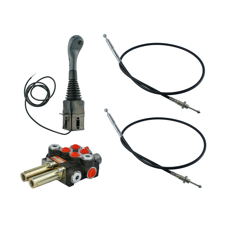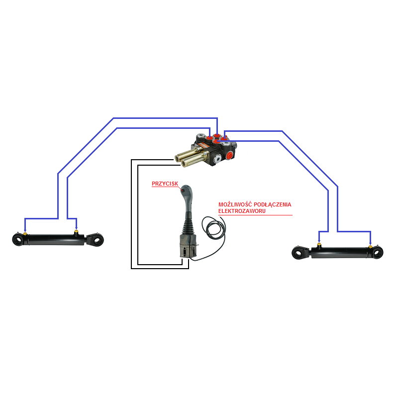Zestaw hydrauliczny 2 sekcyjny: rozdzielacz 40L + joystick z jednym przyciskiem + dwie linki 3m