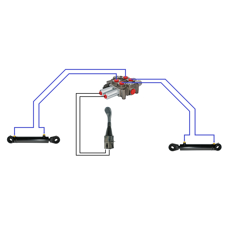 Zestaw hydrauliczny 2 sekcyjny: rozdzielacz 90L + joystick bez przycisków + dwie linki 2,5m