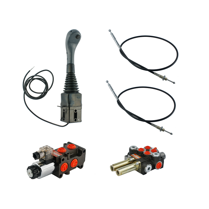 Zestaw hydrauliczny 3 sekcyjny: rozdzielacz 40L + elektrozawór 6/2 + joystick z jednym przyciskiem + dwie linki 3m